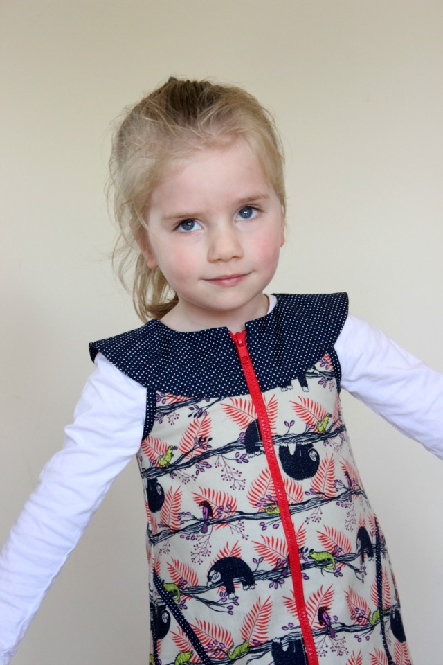 This is the Zip it dress from Make It Perfect. I've had this pattern for ages and finally got around to making it. As soon as I bought this Cotton and Steel sloth fabric I knew it would be perfect for this pattern. Originally I'd planned to make it with a red yoke but by happy accident I saw it next to some blue dotty bias binding I was using and decided that would be even better. But then it took me ages to find the right spotty blue. Again by another happy accident I was round my parents place when my Mum had cut out a blue dress and there was enough leftovers for my project.